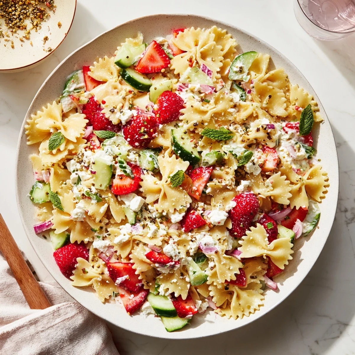Save I stumbled onto this dish by accident one sweltering July afternoon when the strawberries in my fridge were about to turn and I had leftover pasta from dinner. The idea of combining them felt strange at first, but something about the tartness of feta and the coolness of yogurt made me curious. I tossed it all together, half-expecting a disaster, and instead found myself going back for thirds straight from the bowl. Now it's my go-to whenever the heat makes cooking feel impossible.